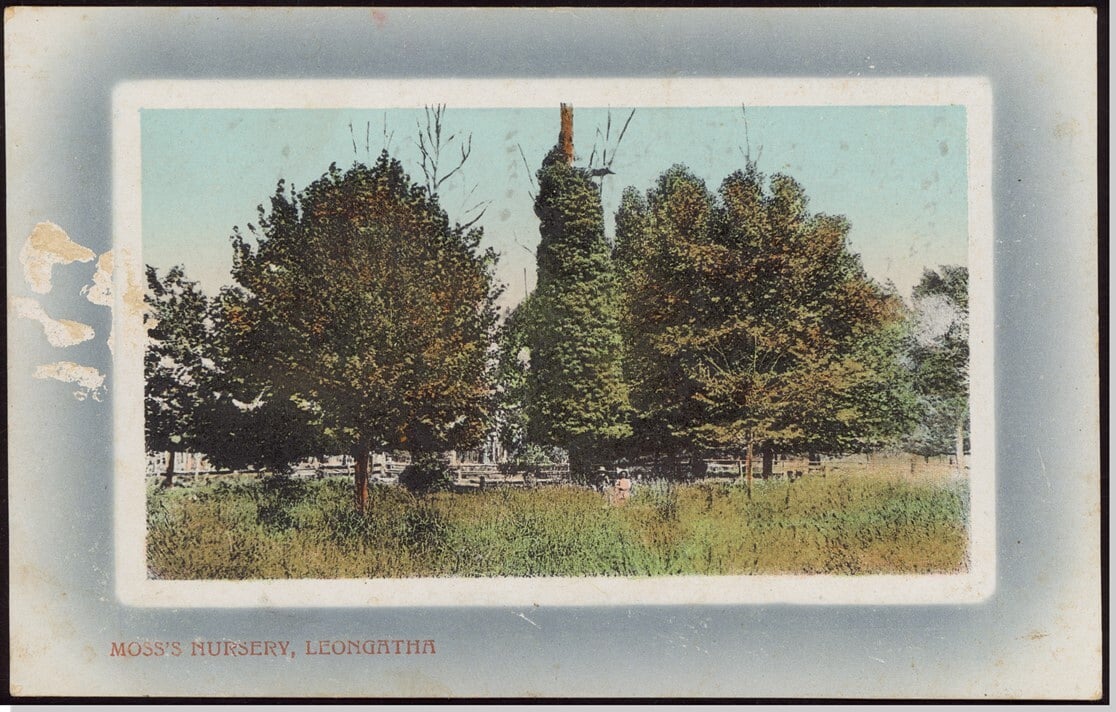 Among those who have devoted their energies to horticultural pursuits in Victoria none are more deserving of credit for skill and perseverance than Mr. Francis Moss, who by unceasing care and application, extending over a great number of years, has succeeded in establishing one of the finest commercial gardens in the colony. About 23 years ago, Mr. Moss settled at Buninyong with the intention of growing produce for market, and ever since he has been actively engaged in gardening. The oldest established portion of the ground, upon which the proprietor resides, known as Mossmont, is beautifully situated in Warrenheip Street, a little more than half a mile from the town of Buninyong. It contains 14 acres, the greater portion being devoted to orchard purposes, but a considerable extent has been laid out as a pleasure garden and planted with a great variety of ornamental trees, shrubs, and flowering plants. For several years after the place was first established the cultivation of vegetables was the principal pursuit, but gradually this gave place to fruit-growing, and the propagation of young trees, to which purposes the garden is at present chiefly devoted. The residence, a neat and commodious building, stands on an elevated portion of the ground, some distance back from the road, and is approached by a fine drive 200 yards long, with borders on either aide. From the home charming views are obtained of Mount Buninyong, with the valley running along its base, towards the east, while on the south lies a magnificent sheet of water, formed by a dam constructed, many years ago, for the Messrs. Learmonth, by Colonel Cotton. Conifers have been planted extensively in the borders flanking the drive and along the front boundary of the grounds and as the climate is peculiarly well-adapted to the growth of most of the species belonging to this class, many noble specimens are, to be met with. Among the more prominent of these specimens are Pinus insignis, 40ft, Wellingtonia gigantea, 20ft; Taxodium sempervirens, 25ft.; several plants of Araucaria imbricata, which seem to be thriving remarkably well, the largest ranging from 18ft. to 20 ft. Picea Nordmanniana is represented by several fine specimens from 8ft. to 10ft. high and there are smaller but thriving plants of P. cephaloniea, P. balsamea, P. Pindrow, P. Webbiana. P. pectinata, P. Pinsapo, P. amabilis, and P nobilis. Among the Abies family, which, as well as the Piceas, seem to be thriving wonderfully, are specimens of A. Smithiana. 10ft; A alba, A. excelsa, A. Douglasii. and A. Menziesii, ranging in height from 4ft. to 6ft. Cupressus macrocarpa is represented by several fine specimens from 25ft to 30ft. high, which were planted 15 years ago, and are now seeding freely. There are also handsome plants of C. torulosa, 15ft., C. Lawaoniana, 10ft, and C. corneyana, 15ft high. The English yew (Taxus baccata) seems perfectly at home, one handsome specimen having attained the height of 10ft. Besides the conifers mentioned, there are also several fine specimens of other classes, including a magnificent tulip tree (Liriodendron tulipifera), fully 20ft high; a Silver variegated holly, 15ft, loaded with berries; and other kinds equally vigorous. The horse-chestnut appears perfectly at home, and a couple of specimens about 15ft. in height are bearing a heavy crop of nuts, a number of young seedlings growing under the trees. Interspersed among the specimens are magnolias, pittosporum, yuccas, roses, liliums, phloxes, gladioli, and many other plants, which give the borders a gay and varied appearance. In the immediate vicinity of the house are several beds filled with a choice collection of florists' and other flowers, which make a fine display. Among the more noticeable are daphnes, rhododendrons, camellias, &c., and a fine clump of Lilium auratum now coming into bloom, many of the flower-spikes ranging from 6ft. to 9ft high. A creek runs through the lower portion of the garden, and here some noble specimens of deciduous trees are to be found. All are in perfect health and vigour, and the variety of their foliage forms a beautiful contrast to the indigenous vegetation beyond them. They are planted rather thickly, their foliage forming a beautiful densely-shaded grove through which the rays of the sun cannot penetrate. Among the principal specimens are weeping willows 40ft high, with trunks 2ft. in diameter; a fine horizontal elm fully 35ft, whose branches spread over a large area ; sycamores, birchs, and silver poplars 30ft., English oaks over 35ft., English and American ashes from 25ft. to 30fr., planes and larches ranging from 15ft. to 20ft.